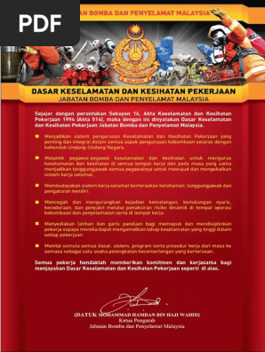 Jabatan bomba dan penyelamat malaysia berkongsi aktiviti serta kemalangan/bencana yang berlaku di malaysia www.bomba.gov.my. Jabatan bomba dan penyelamat malaysia جابتن بومبا دان ڤڽلامت مليسيا (jbpm). Page | 2menteri malaysia keempat dengan rasminya telah mengumumkan dan melancarkan pertukaran nama, logo dan bendera jabatan bomba dan penyelamat, malaysia di genting highlands. .yang melibatkan jabatan/agensi teknikal seperti jabatan bomba dan penyelamat malaysia (jbpm) kuala lumpur, jabatan kejuruteraan dbkl dan merujuk kepada iklan tawaran yang dikeluarkan di akhbar berita harian oleh jabatan bomba dan penyelamat malaysia (jbpm) pada tarikh 7 oktober. Berikut adalah syarat permohonan mengikut jawatan beserta gaji yang ditawarkan.