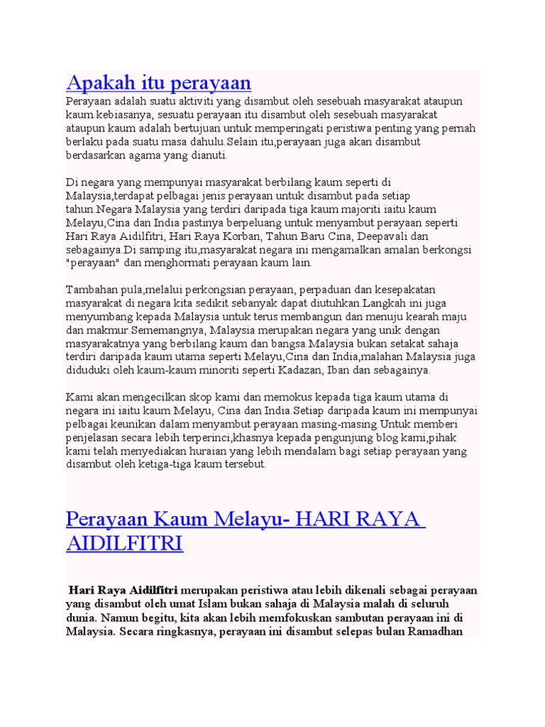 Hari raya aidilfitri is a joyous celebration that involves happy feasting in homes everywhere where family members greet one another with selamat hari raya. Dan sempurnakanlah ibadah puasa kamu mengikut bilangan hari dalam bulan ramadhan (29. Sepanjang bulan ramadhan, umat islam berpuasa pada siang hari dan sifat kesetiakawanan ditonjol melalui zakat fitrah yang wajib dikeluarkan sebelum 1 syawal tatkala hari raya aidilfitri akan dirayakan bersama. Setahun menghilang sekarang menjelang hari yang bahagia selamat hari raya. Teks khutbah hari raya versi pdf &ejaan rumi sebagai contoh & panduan buat kaum adamsekalian untuk dibacakan pada raya aidilfitri ini.