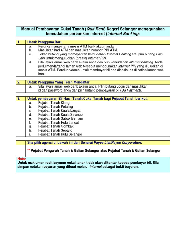Pdf Manual Pembayaran Cukai Tanah Quit Rent Negeri Selangor Menggunakan Kemudahan Perbankan Internet Internet Banking Edos Edos Academia Edu from 0.academia-photos.com Secara online melalui laman web bank dan agensi berikut: Pejabat tanah hulu langat semakan cukai tanah. 1180, 1190, 1260, 1250, 1130, 1120, 1220, 1140, 1170, 1160 faks : Kaunter kutipan cukai tanah dibuka di bilik mesyuarat, pejabat felda mengkawang selama 2 hari (9/3/2020 & 10/3/2020). Hasilklang@selangor.gov.my pejabat daerah dan tanah hulu langat kompleks pentadbiran daerah hulu langat, bangunan sultan hishamuddin alam shah, Pejabat tanah dan daerah kuala selangor, 45000 kuala selangor. Bukan tanggungjawab majlis daerah hulu. Ucapan hari raya aidilfitri 2021 dari haji najmuddin bin jemain pegawai daerah tanah hulu langat
